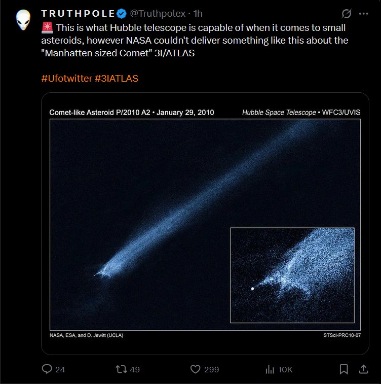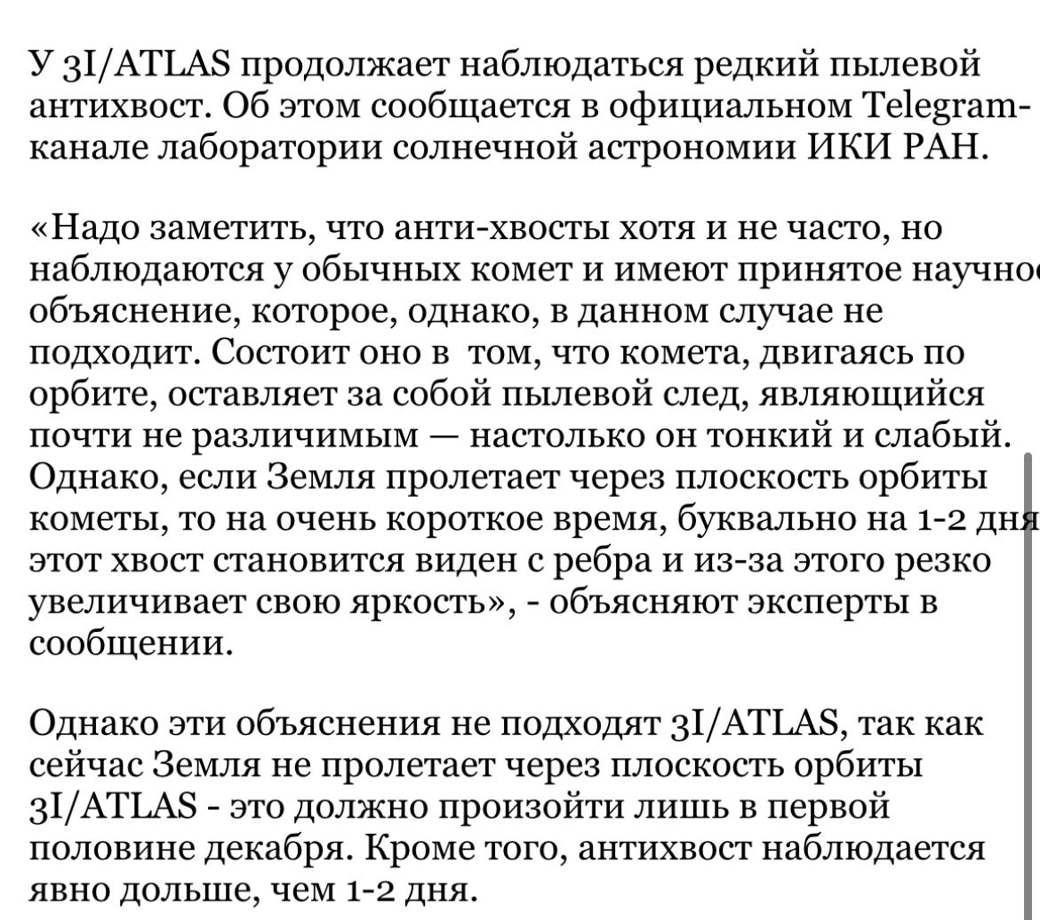 3i Atlas - снимок объекта, из-за которого NASA официально активировало планетарную защиту