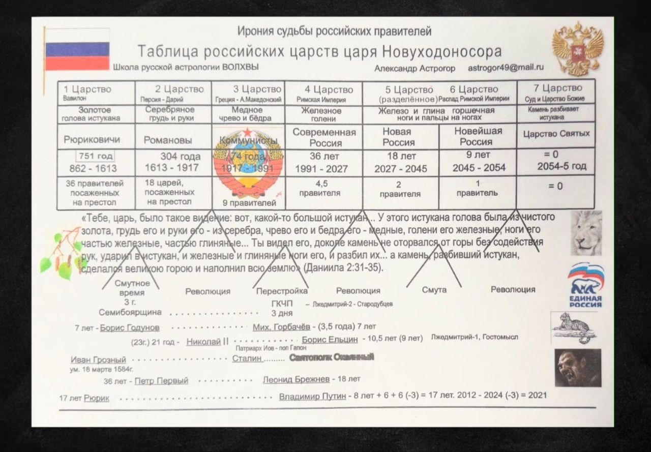 Если по твоим прогнозам будет переломный момент для России и мира то у меня есть пара вариантов сначала для России а потом для всего мира Для России: 1.Убийство Путина во время речи 9 мая 2.Увеличение нападений на россиян от индусов 3.Бунты насчет свободы слова в интернете Для всего мира: 1Нападение США на все страны северной Америки 2Кризис из за высокой преступности в Европе 3.Хрень с астероид ом который летел к Юпитеру (вдруг пришельцы?)