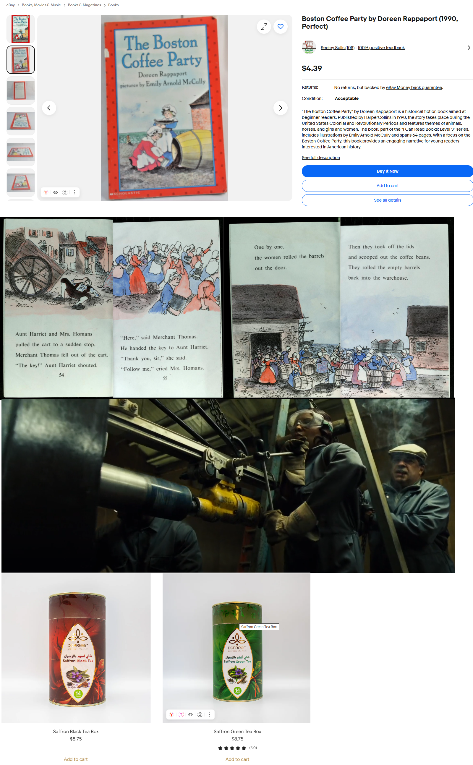 Дорин -- Дорин Раппапорт, написавшая "Бостонскую кофейную вечеринку". В ней описаны реальные события, где женщины конфисковали кофе у нечестного торговца, который припрятал запасы кофейных зёрен на время войны, пока цена не стала достаточно высокой для получения прибыли. В сцене с сейфом Дорин высверливает замок сейфа, в котором хранится порошок лорда Джона, взвинтившего цену на фоне проблем у конкурента (это спекуляция), в книге женщины так же вероломно (отобрав ключ) проникают в хранилище и изымают у торговца-спекулянта (придерживающего до прироста цен кофе Голландской Ост-Индской компании на фоне проблем с чайной торговлей у Ост-Индской компании) кофе, который можно символически назвать "порошком Лорда Джона" -- импортом кофе в США тогда занималась Голландская Ост-Индская компания, основателем которой был Лорд Йохан (Джон) ван Олденбарневелт. Также Dorreen Saffron -- компания, занимающаяся выращиванием шафрана и продажей чая с его добавлением.