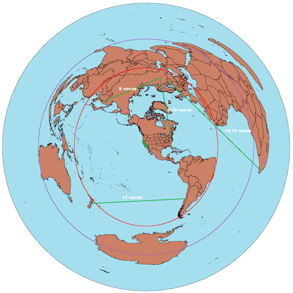 >>941563 (OP) >Куда пропал куполопророк? я тут. я не пропал. но я же не вечный и когда-нибудь меня не станет. алсо я съебу в пендосию и постить на пораше уже не смогу(ведь блочат). >>941623 всё зависит от конкретного расположения "континетнов" на карте. вот например проекция где "центром" земли является лос анжелес в таком случае если провести прямые линии от точки А к точке Б то выйдет что всё сдохится например перелёт из Сантьяго(Чили) в какой-нить Веллингтон(НЗ) занимает 12 часов и этому соответствует линия потом смотрим на перелёт из Москвы до Владивостока это где-то 8 часов. Линия чуть-чуть короче чем та что указывает на перелёт из Чили в НЗ. перелёт из Вильнюса в Йоханесбург(Юж Африка) занимает 14 часов) линии чуть-чуть длиннее чем Чили-НЗ перелёт Москва Нюёрк чуть чуть короче чем Чили-НЗ. Перелёт занимает 10 часов