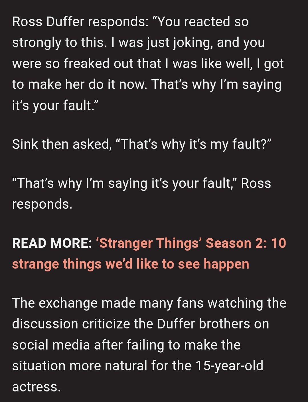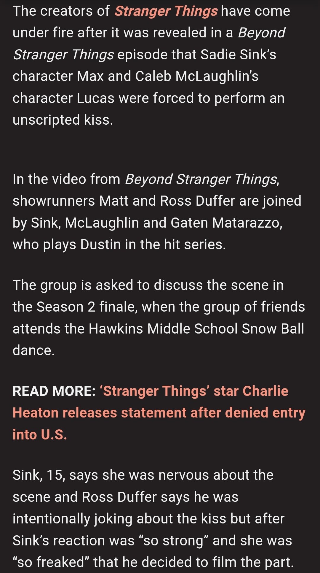 Создатели "Очень странных дел" буквально терроризировали эту бедную девушку и заставили ее поцеловать Калеба на съемочной площадке, когда ей было всего 15 лет. Это ритуал унижения, теперь они будут заставлять ее участвовать в сексуальных сценах с небелыми до конца ее карьеры, иначе у нее не будет карьеры.