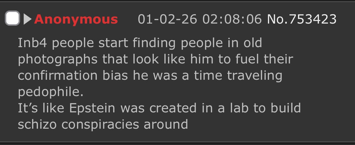 >>952903 Это база. Основа. То с чего все началось. Эпштейна слили что бы больший пиздец скрыть. Типа вот вы хотели педофилов разоблачить - получайте. А Эпштейн сам жив. Вот, лежит рофлит от сюра который он сам провернул