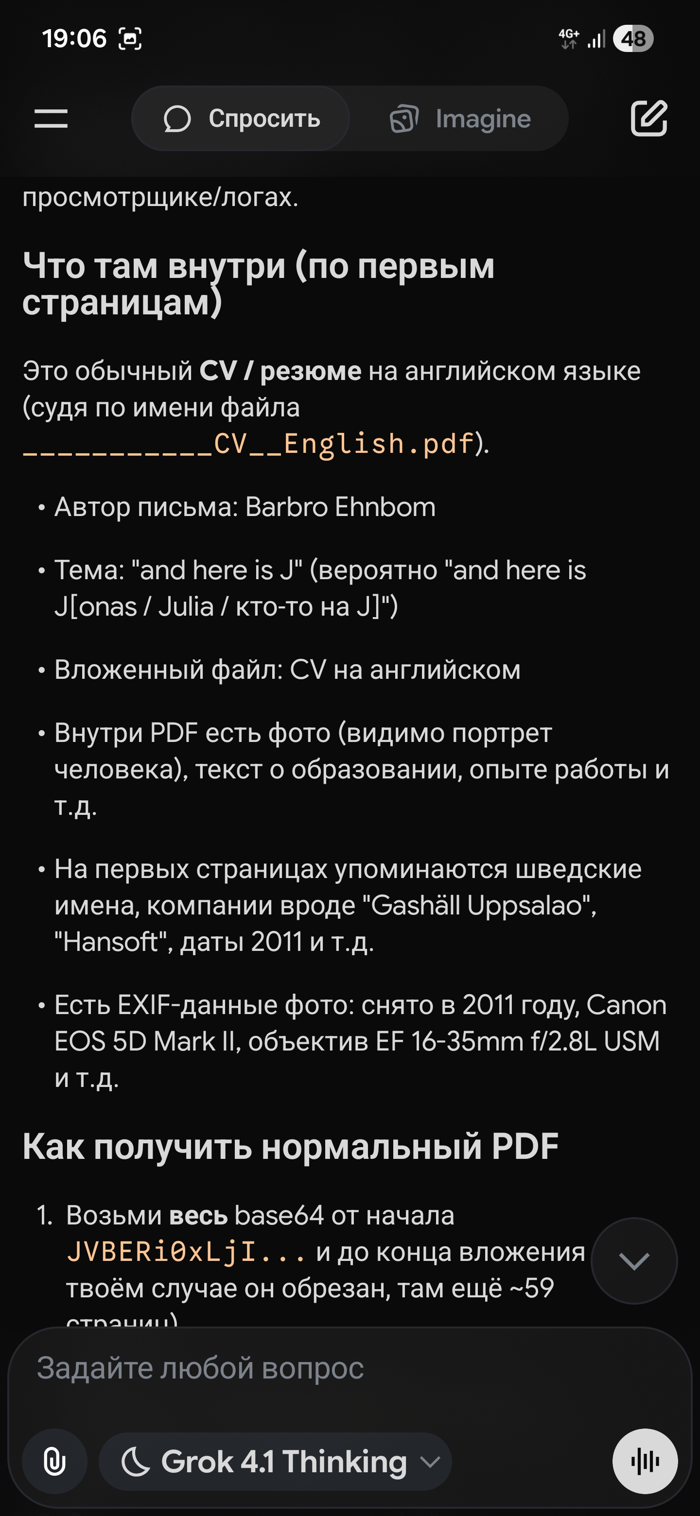 >>953088 Обычные анальники с 3 извилинами пишут простой парсер, которы лишнюю инфу после base64 to image вырезает, но для тебя это внеземные технологии. Понятно.