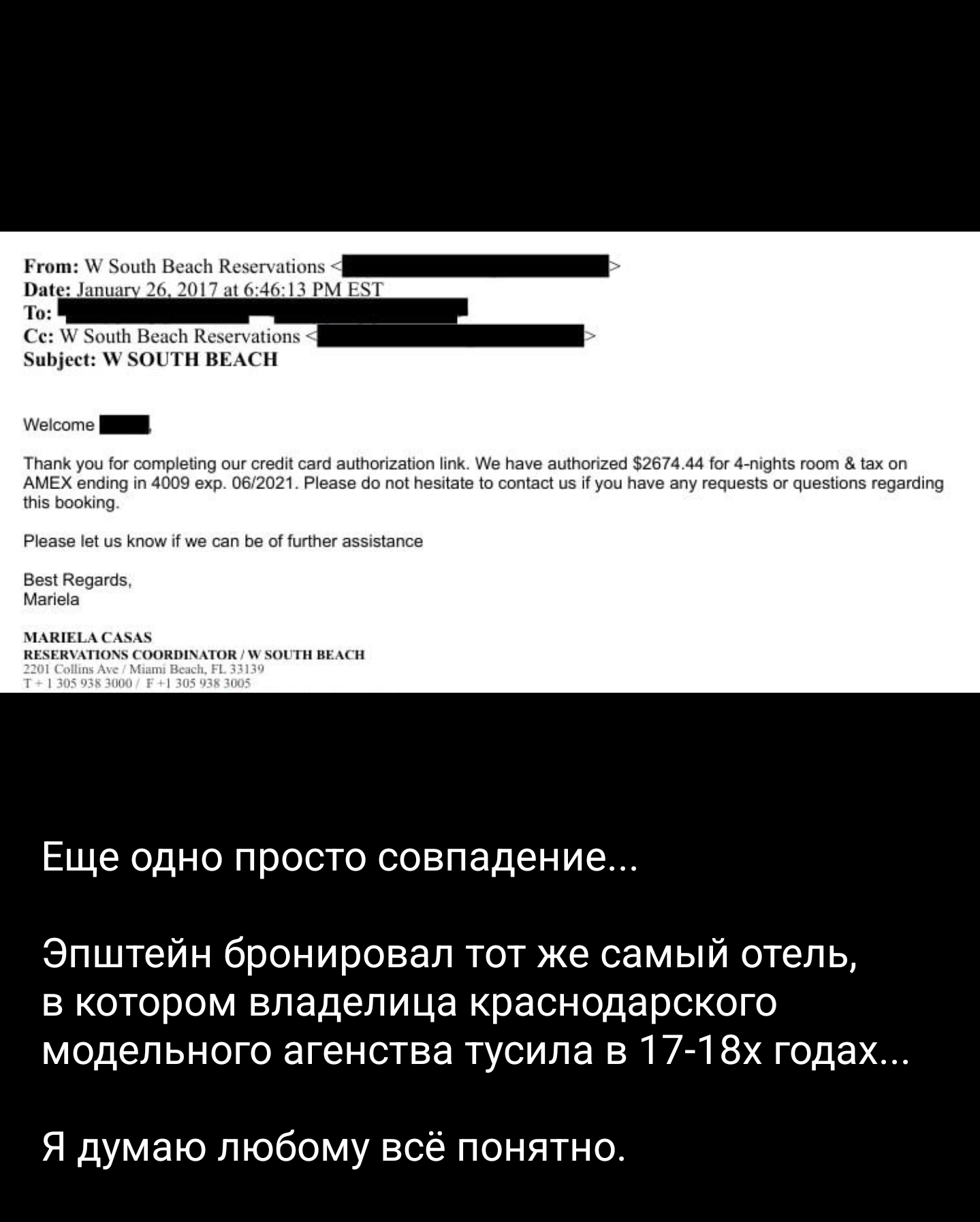 >>953515 Рос.гос.сми озвучивают точку зрения госпожи Борисенко, владелицы Шторм моделс. Мол она ни при чём. При этом ''наши'' сми не объясняют почему название её агентства моделей было найдено в файлах Эпштейна. Думайте.